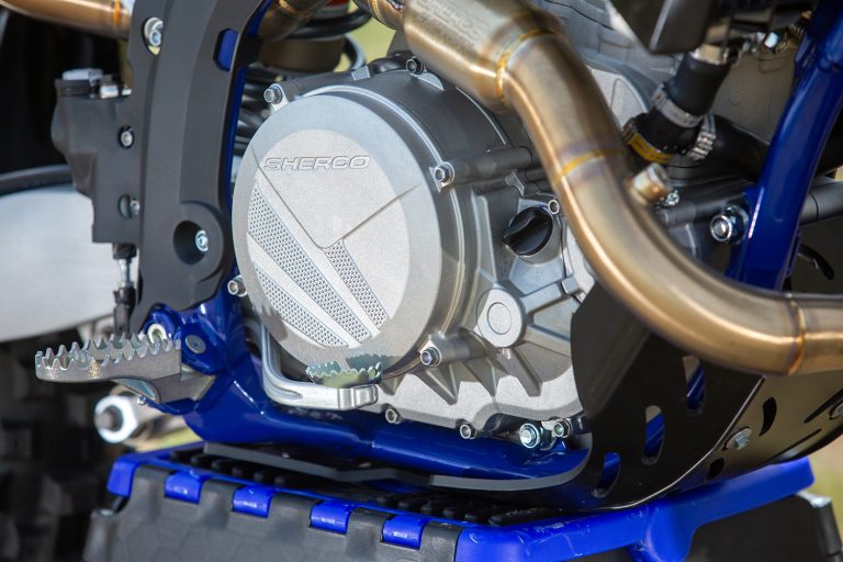 Sherco Factory exhaust header pipe and Akrapovič silencer