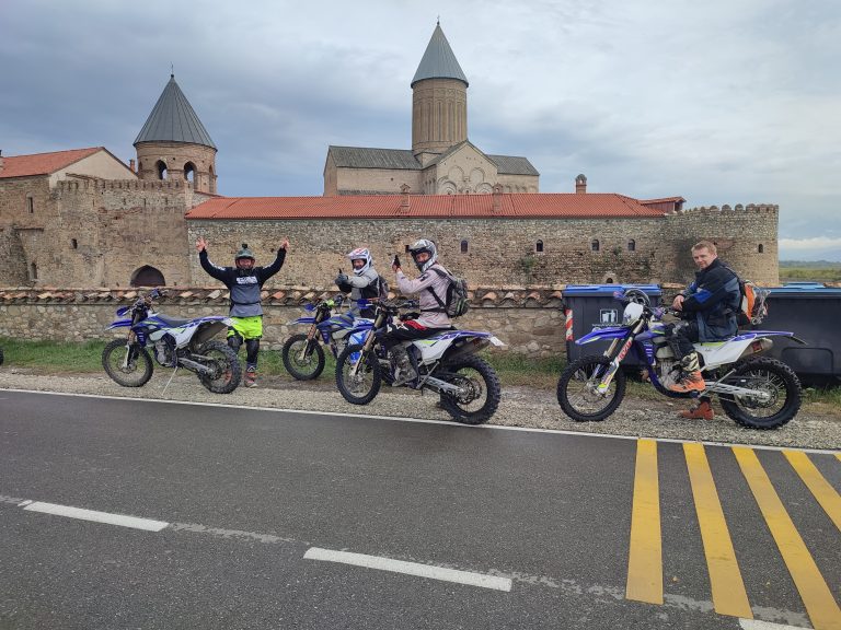 Enduro tour to Mtskheta: Today’s program includes approximately 140 km of off-road-rich terrain across the Trialeti mountain range. The route consists of steep, rocky ascents and descents, river crossings, and single tracks through the forest. As a reward for the hardships, a hearty lunch will be served at the end of the day in the ancient city of Mtskheta. In the late afternoon, we visit a world-famous UNESCO heritage site, the medieval Svetitskhoveli Cathedral.
