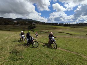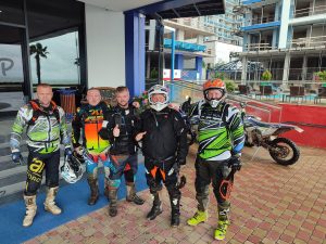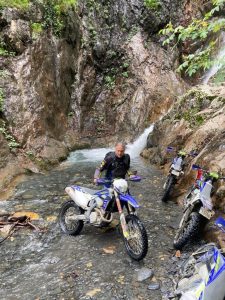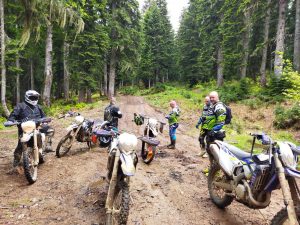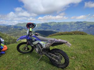 The ride takes us on the enduro motorcycle through rough terrain, mountain roads, sandy sections, gravel, and rocky terrain.
